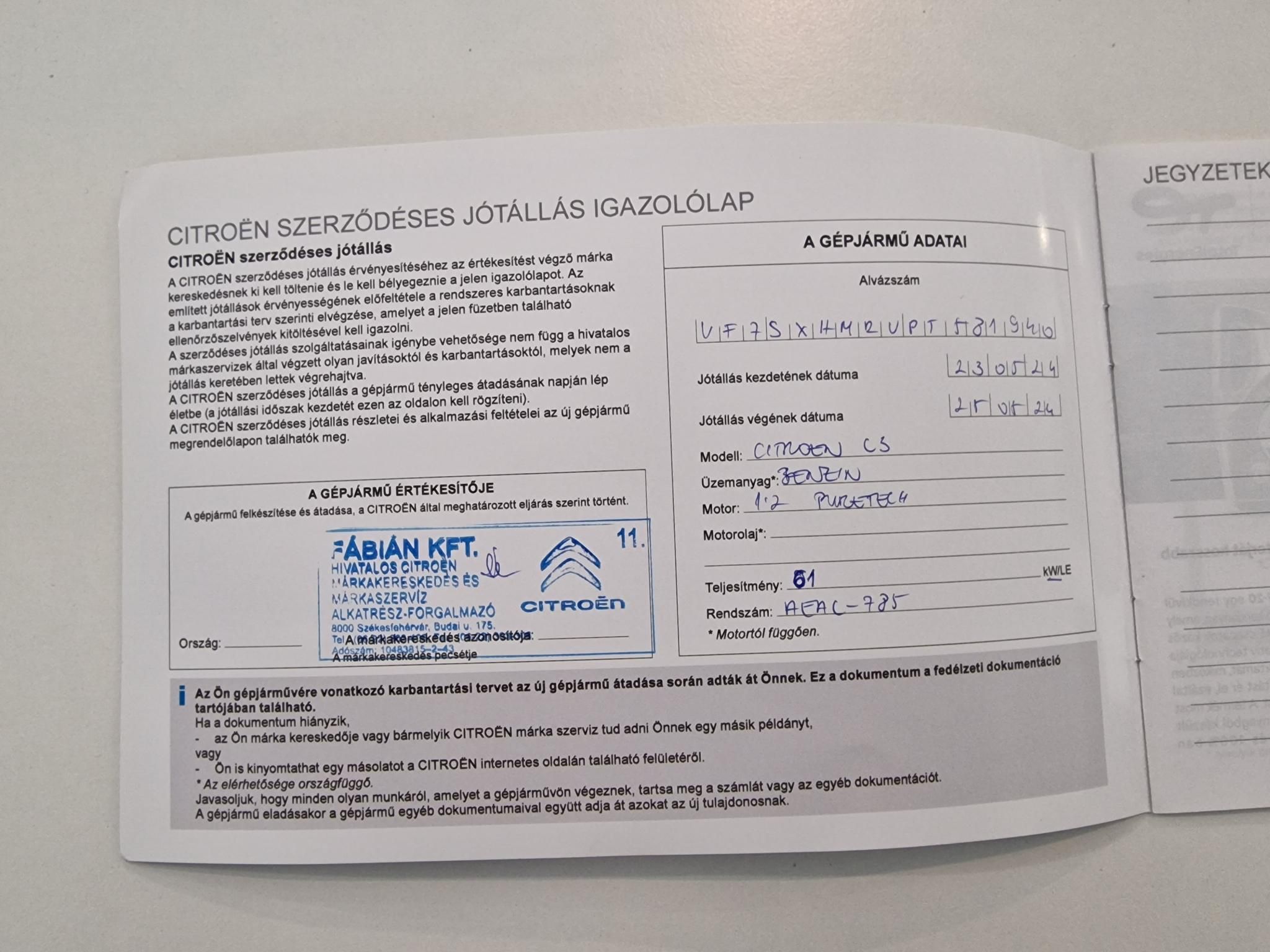 Okmányok: | Forgalomból ideiglenesen kivont, magyar okmányokkal |