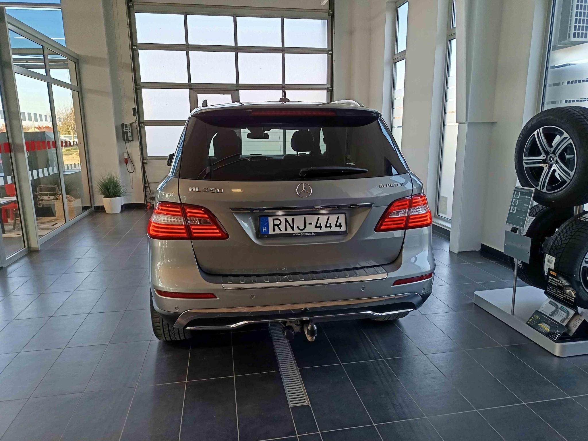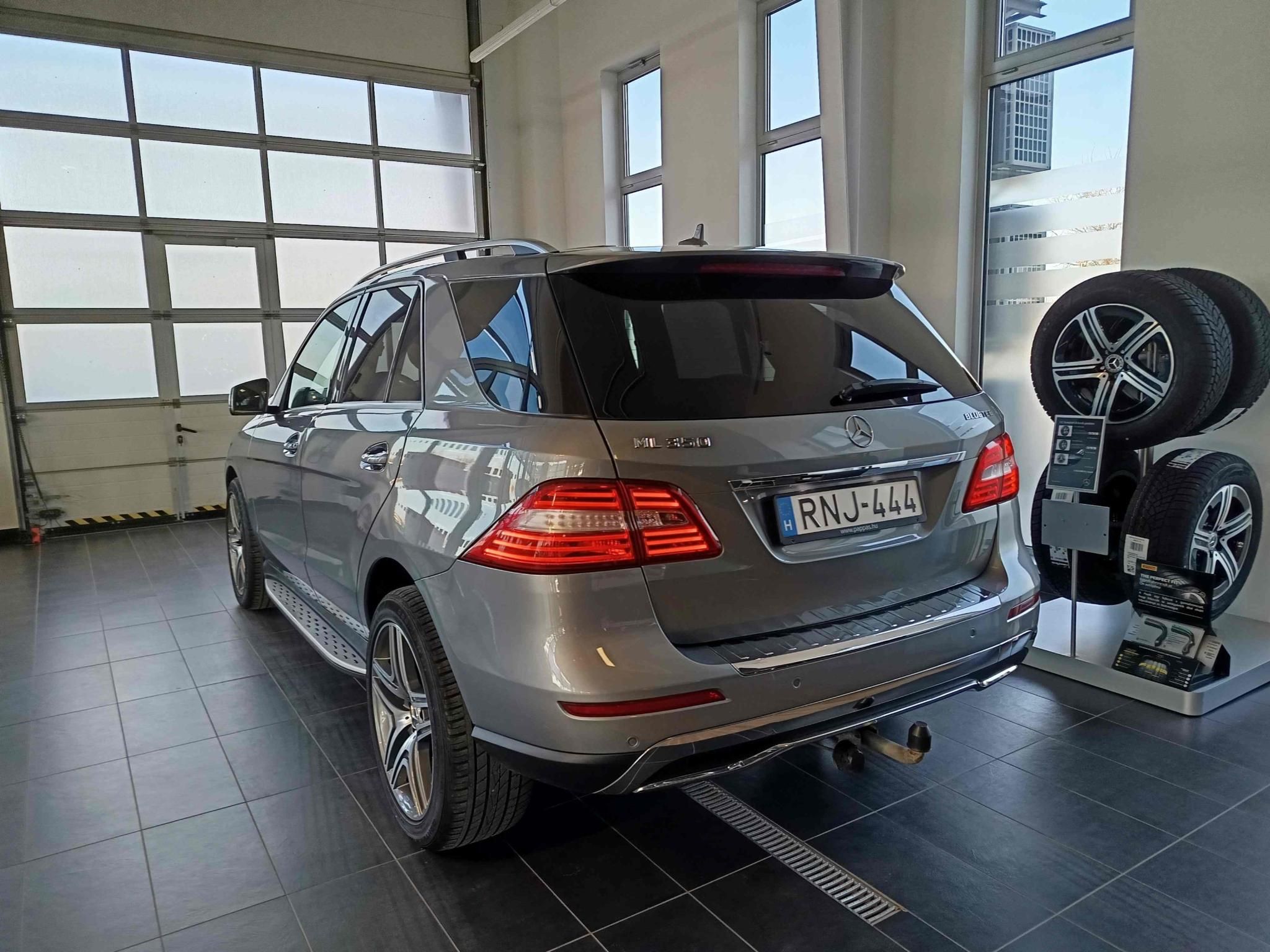 Eladásra kínáljuk, Mercedes-Benz ML 350 4Matic, 3L OM642 V6 dízelmotorral szerelt, Palládiumezüst színű használt autónkat. Főbb extrák: Fekete/antracit bőr belső, aktív parkolássegítő asszisztens, bőrkormánykerék és váltókar, automatikusan elsötétedő belső és külső visszapillantó tükör, ütközésfigyelmeztető rendszer aktív fékbeavatkozással, térdlégzsák, 7 fokozatú automataváltó, RDK(gumiabroncsnyomás-ellenőrzés), elektromosan behajtható külső tükrök, közlekedési jelzés felismerés, DVD lejátszó navigációval, betörésjelző és riasztóberendezés, elektromos első ülések, klímaberendezés, fényszórómosó berendezés, automata távfényszóró, alu díszítőelemek, sötét színezett üveg, ülésfűtés elöl, fűtött ablakmosó berendezés, vonóhorog (3500 kg-ig) elektromos hátfalajtó, növelt teljesítményű motor, tükör csomag, stb. A vásárlás napjától érvényes 12 hónap Real Garant garanciával.Megtekintésért előzetes időpontegyeztetés szükséges, hívjon bizalommal!