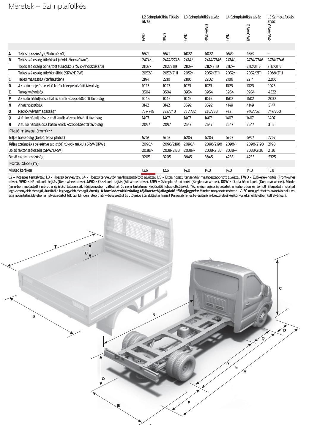 A Ford Transit L4 Szimplakabin alváz , Gyári Platóval /KÉSZLETEN/ , akár 3% KAVOSZ finanszírozással, 5 év garanciával, több felszereltségben elérhető, rendelhető! Extra felszereltség: Hosszúkarú külső visszapillantó tükör/Pótkerék (tartalmaz szerszámkészletet)/Széles aluminium plató lehajtható oldalfallal /Vonóhorog- Vontatmány stabilitás vezérlővel (TSC)/ Bővebb tájékoztatás érdekében keressen bizalommal! A hirdetésben közölt adatok tájékoztató jellegűek és nem minősülnek szerződéses ajánlattételnek. A képek illusztrációk. / Kertész Balázs Ford értékesítéső +36303233784 /