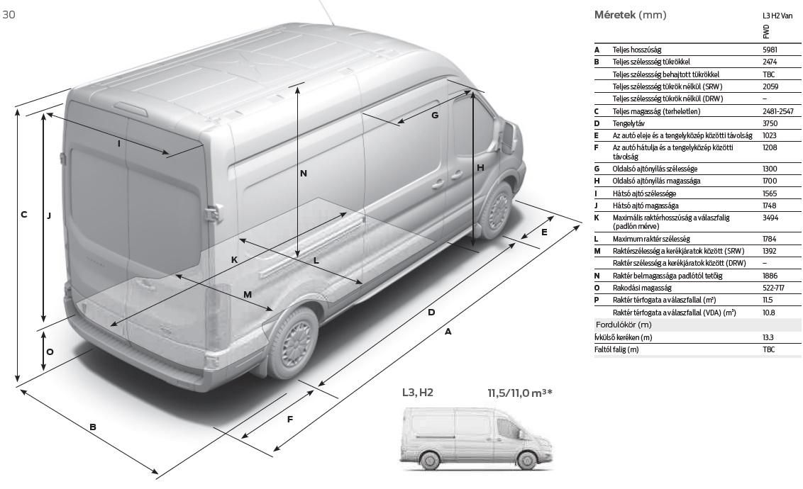 A Ford Transit L3H2 KÉSZLETEN, akár 3% KAVOSZ finanszírozással, 5 év garanciával! TOVÁBBI FELSZERELTSÉG:/CV csomag:- LED-es világítás a rakodótérben- Teljesen szigetelt rakodótér padló - Teljes magasságban farostlemez burkolat//Első légzsák - utas oldalon- Első utasoldali biztonságiöv előfeszítő- Utasoldali első légzsák kikapcsoló gomb- Figyelmeztetés a biztonságiöv bekapcsolására, hang és fényjelzés/Első üléscsomag 8A- Capitol City üléshuzat, Ebony szín- Fűthető 4 irányban manuálisan állítható vezetőülés deréktámasszal, kartámasszal- Fűthető 2 irányban manuálisan állítható dupla utasülés- Lehajtható asztal- Légzsákok /Pótkerék / . A hirdetésben közölt adatok tájékoztató jellegűek és nem minősülnek szerződéses ajánlattételnek. A képek illusztrációk. Kertész Balázs Ford értékesítéső +36303233784