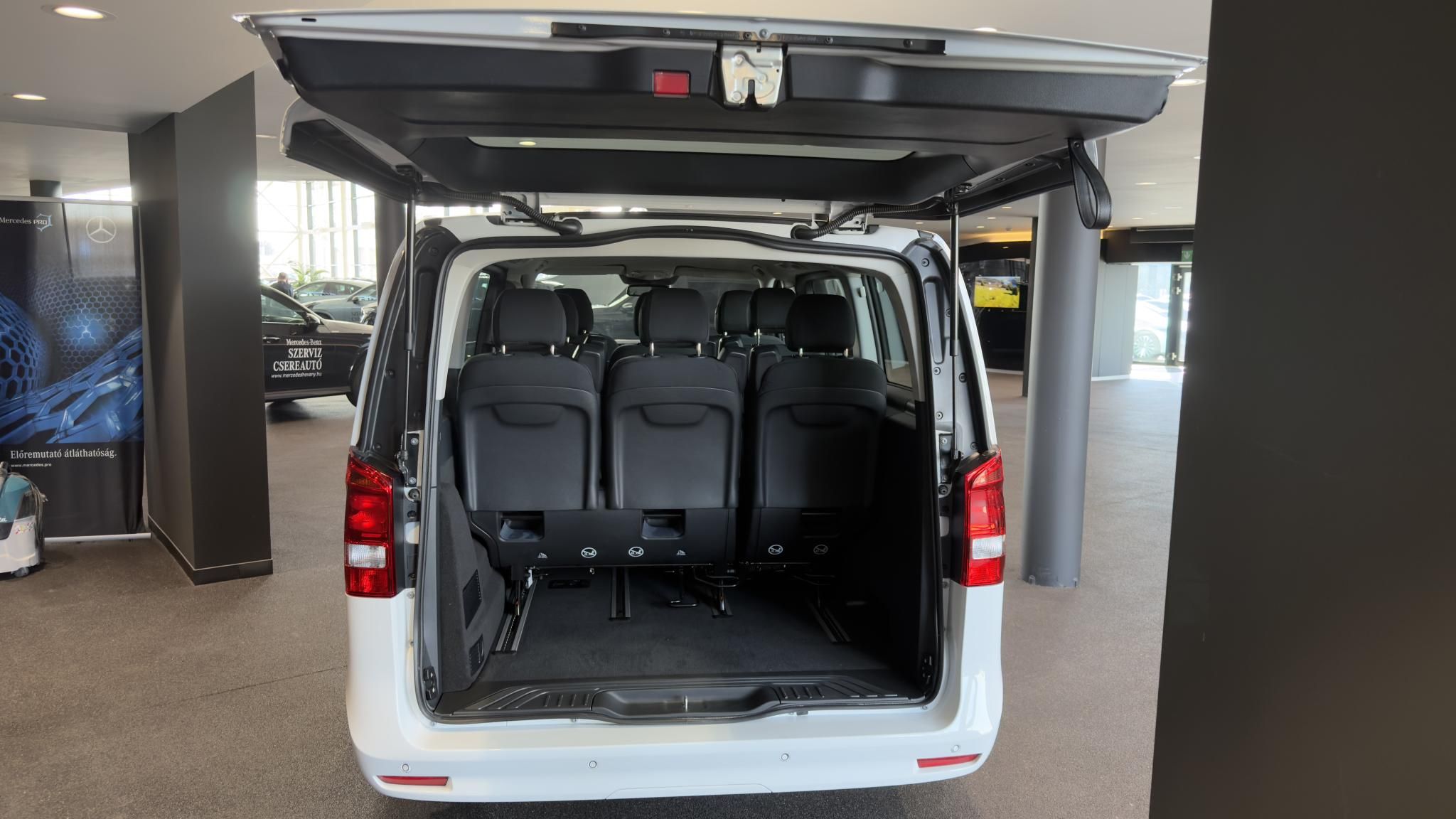 Állítható kormány, álló helyzeti klíma, állófűtés, bőrkormány, centrálzár, digitális többzónás klíma, dönthető utasülések, elektromos ablak elöl, elektromos tükör, fedélzeti komputer, fűthető első ülés, hangvezérlés, kétoldali tolóajtó, kormányváltó, multifunkciós kormánykerék, szervokormány, tolatókamera, tolóajtó.